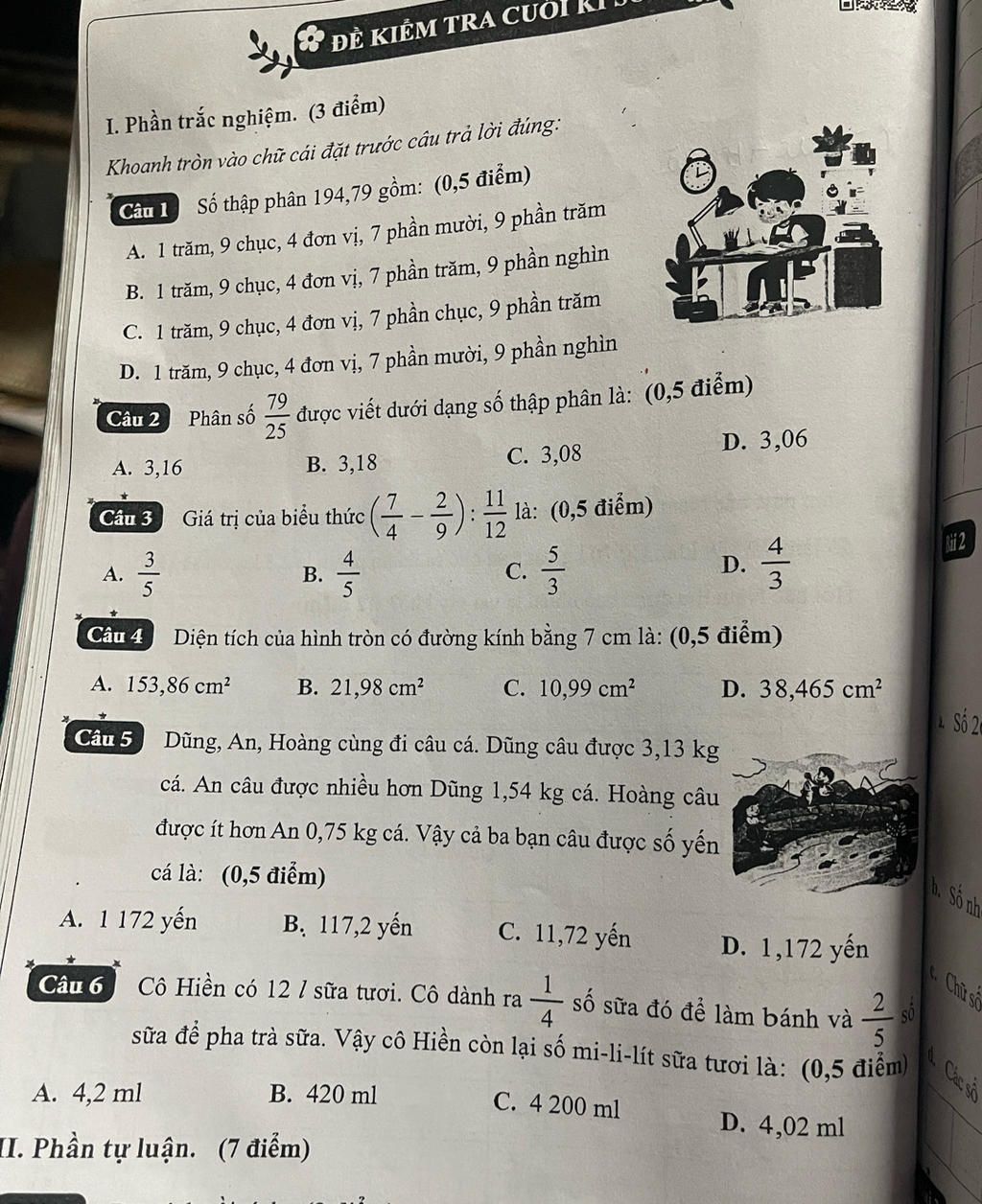 $\text{Sô kg cá Hoàng câu được là: }$$\\$