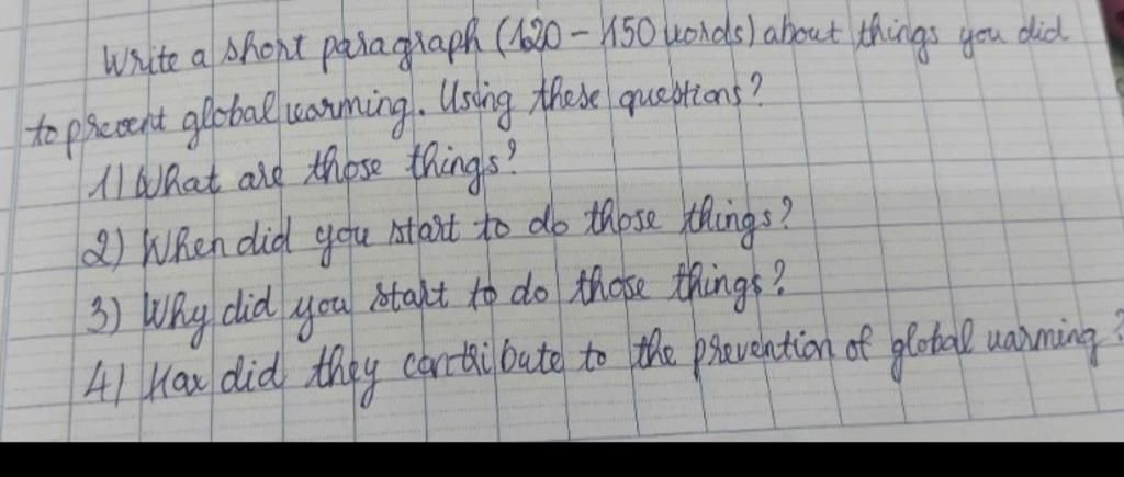 to prevent global warming. Using these questions?