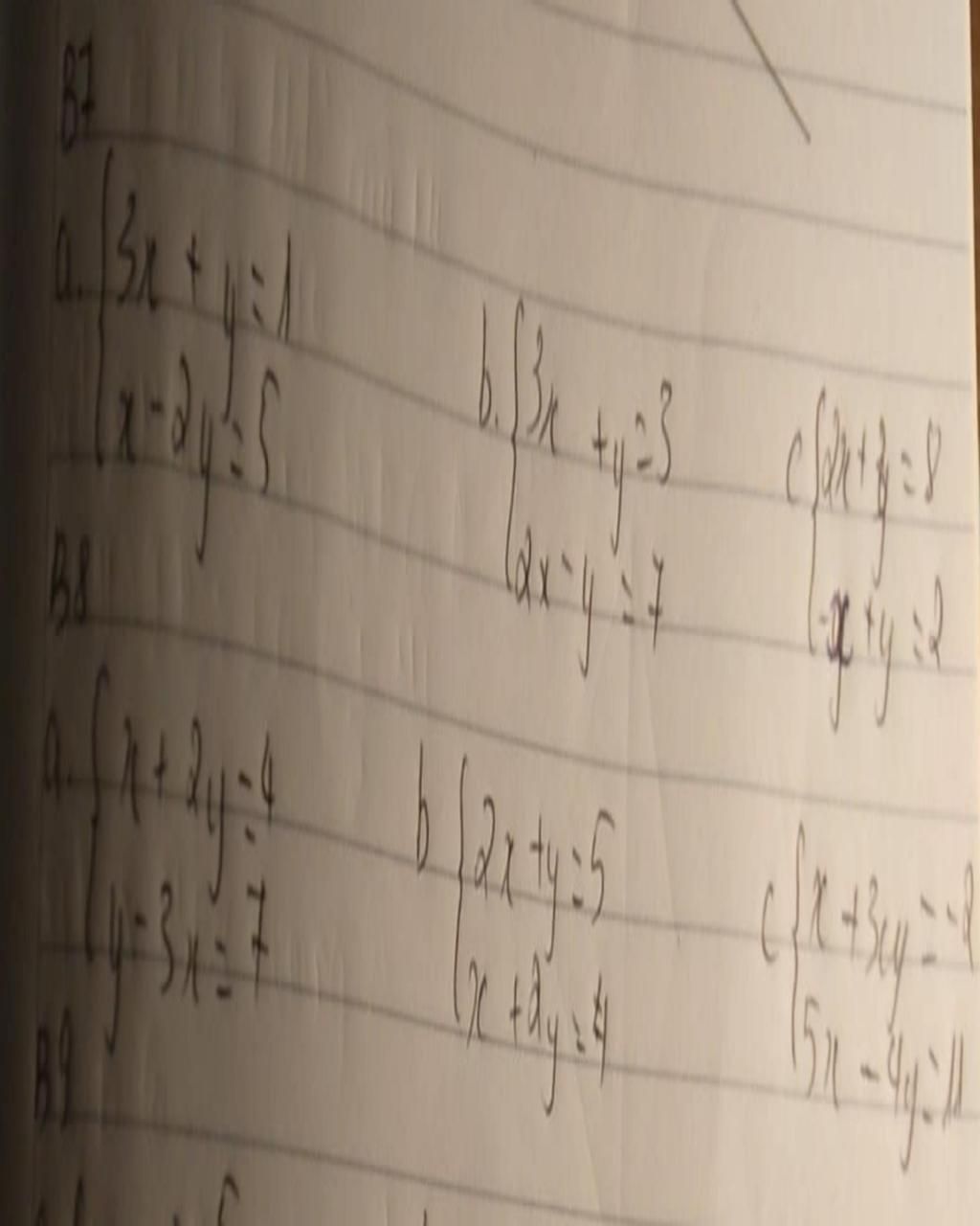 ` a){ ( 3x + y = 1 ) , ( x - 2y = 5 ) :} `