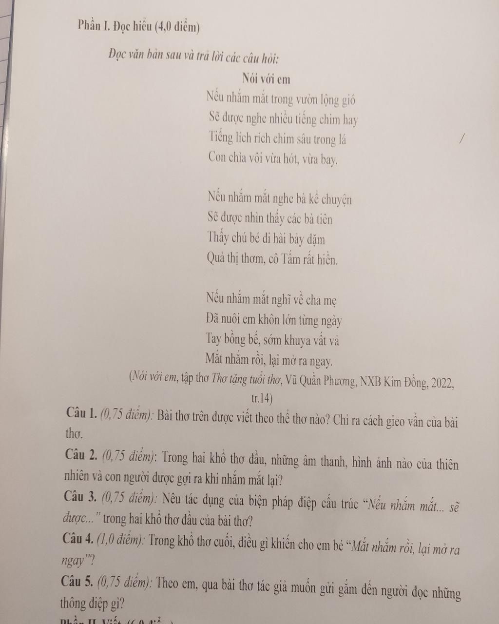 Nêu tác dụng của biện pháp điệp cấu trúc " nếu nhắm mắt...sẽ được..." trong 2 khổ thơ đầu của bài thơ