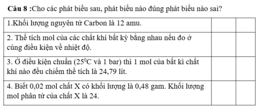b, đúng vì : các điều kiện này giống nhau, thì thể tích của các chất khí sẽ tỉ lệ thuận với số mol của chúng.