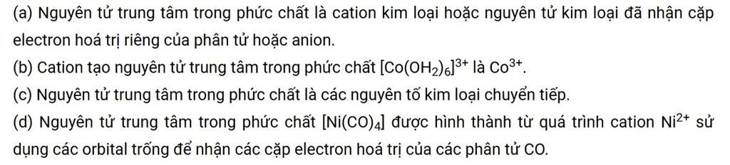 `(c)` Sai vì một số các nguyên tố s, p vẫn tạo phức được như Al, Pb, Sn