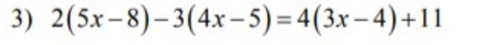 `3) 2(5x-8) -3(4x-5) =4(3x-4) +11`