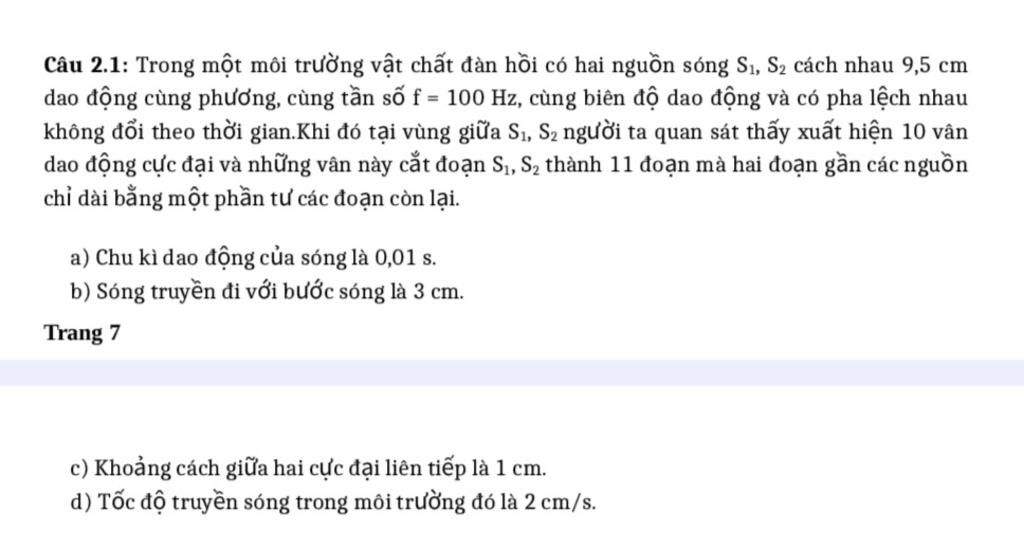 \(v = \dfrac{\lambda }{T} = \dfrac{2}{{0,01}} = 200\left( {cm/s} \right)\)