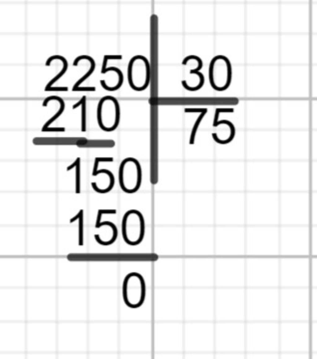 Vậy `2250 : 30 = 75`