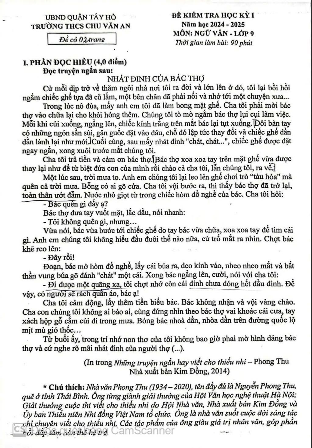 Câu 1 : Truyện Nhát Đinh của bác thợ kể theo ngôi nào ? Bằng lời kể của ai ?