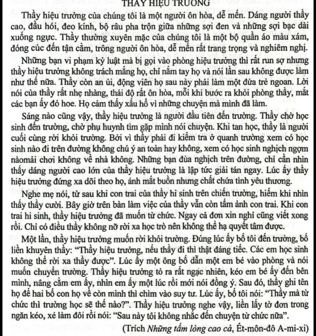 Cuối cùng, thầy hiệu trưởng là người có lòng yêu thương và quản tâm sâu sắc đối với học sinh. Ông luôn coi trọng từng cá nhân, sẵn sàng giúp đỡ và động viên học sinh khi gặp khó khăn. Ông cũng luôn tạo điều kiện tốt nhất để học sinh phát huy tối đa khả năng của mình.