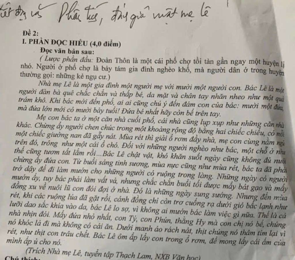 viết đoạn văn nghị luận 300 chữ phân tích nhân vật mẹ lê trong đoạn trích