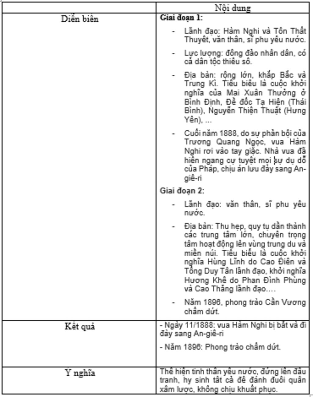 Trình bày hoàn cảnh, diễn biến, kết quả, ý nghĩa của phong trào Cần vương.