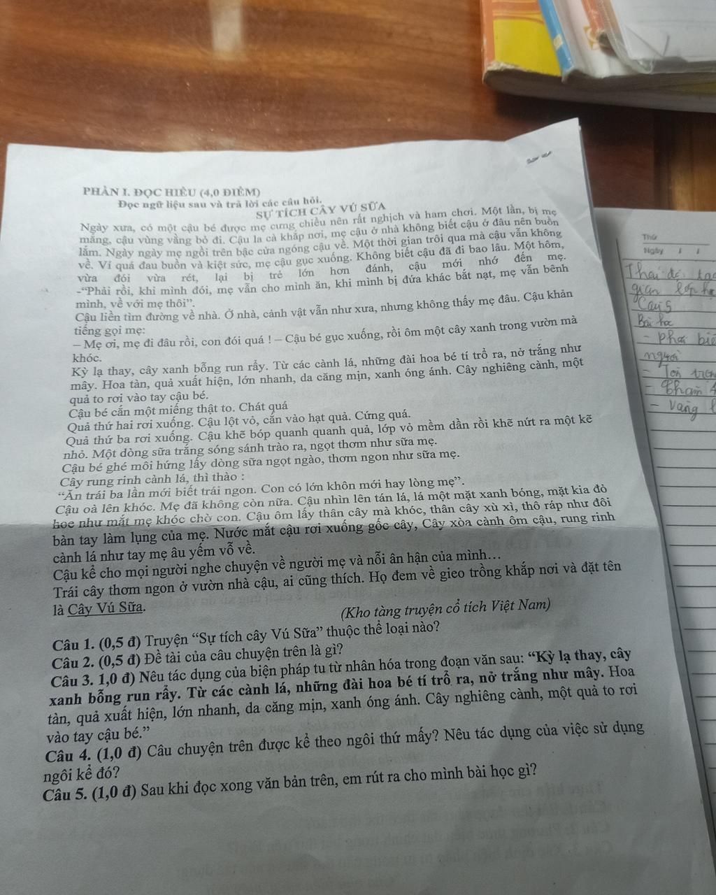 Câu 1 : Truyện "Sự tích cây Vú Sữa" thuộc thể loại truyện dân gian