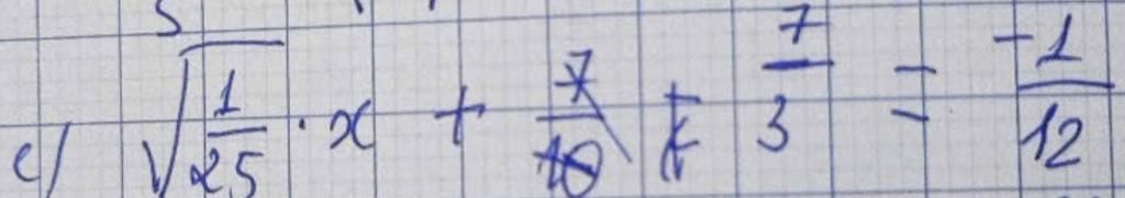 `\sqrt{1/25} . x + 7/3 = -1/12`
