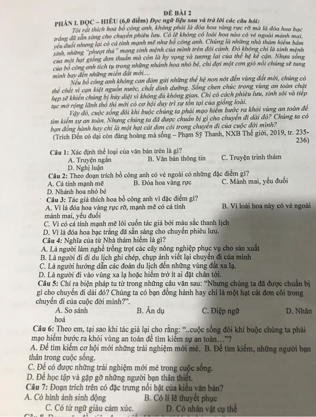 PHẢN I. ĐỌC – HIỂU (6,0 điểm) Đọc ngữ liệu sau và trả lời các câu hỏi: