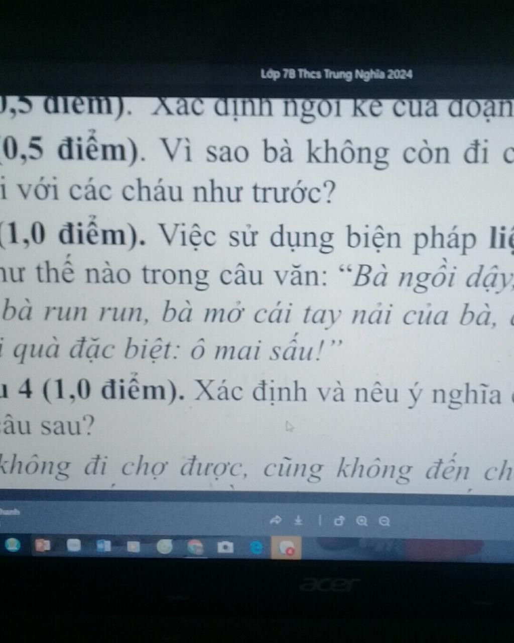 `-` Biện pháp tu từ: Liệt kê `(` ''ngồi dậy, cười cười'', ''mở cái nải của bà, đưa cho tôi một gói quà đặc biệt'' `)`