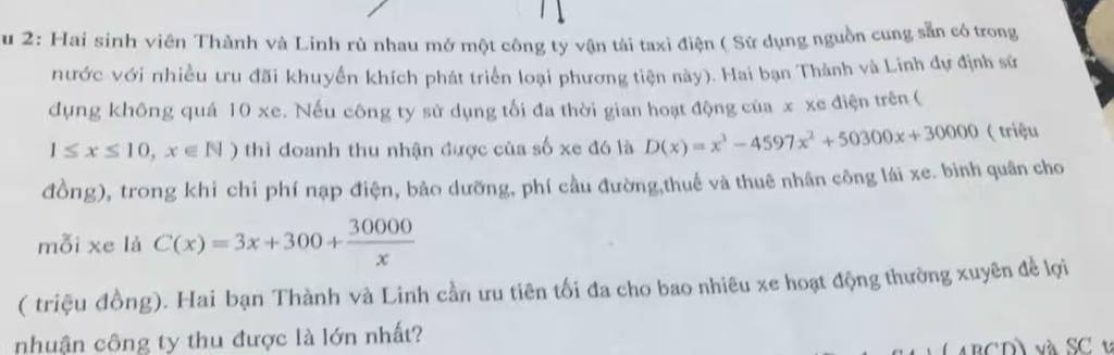 $\Rightarrow$ Cần ưu tiên tối đa cho $5$ xe hoạt động để lợi nhuận đạt lớn nhất