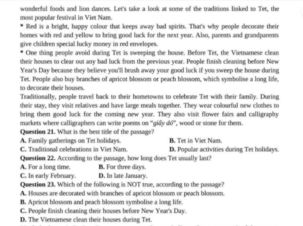 4 Do the Vietnamese clean thier house during Tet?