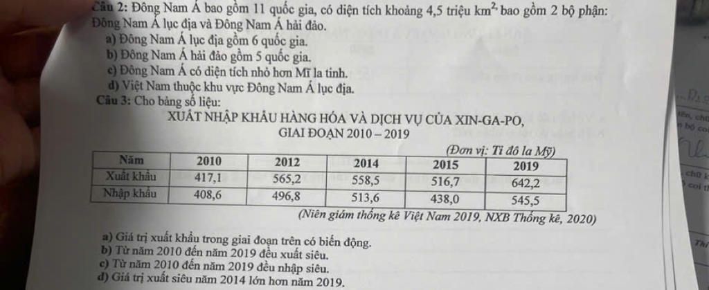 c. Sai → Vì nhiều năm trong giai đoạn này đều không có nhập siêu. Xuất khẩu tăng ổn định và chưa ghi nhận.