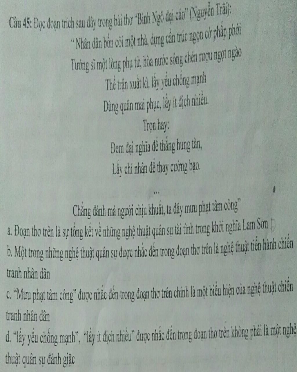 Đoạn thơ tổng kết nghệ thuật quân sự tài tình trong khởi nghĩa Lam Sơn