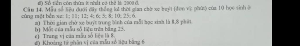 Sắp xếp các số liệu không giảm `:1 4 5 6 6 8 10 11 12 25`