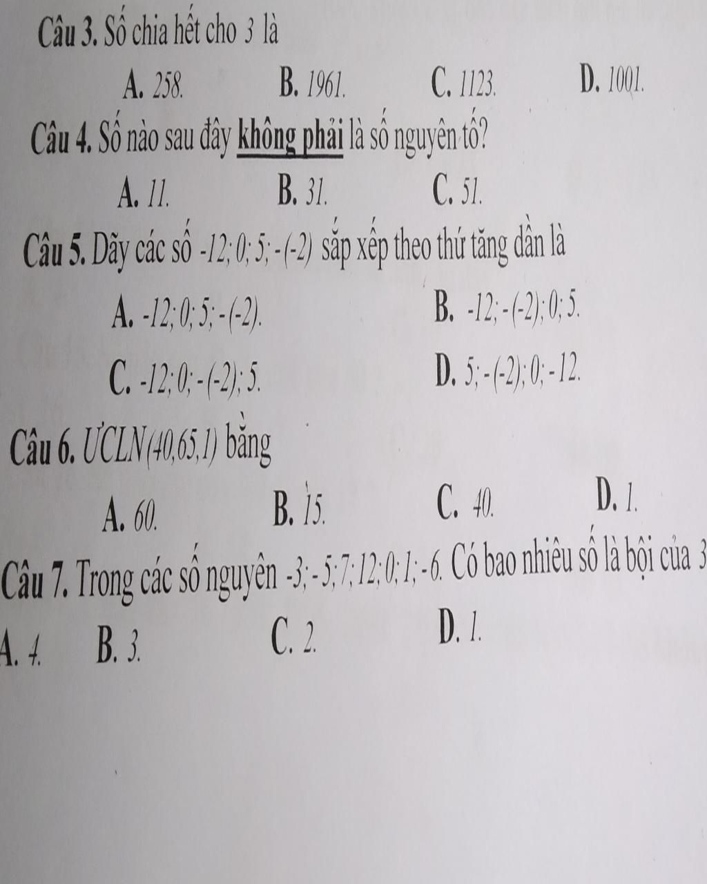 4 Vì ba số trên khi tách ra thành SNT thì ba số ko có số nà chung nên ƯCLN của ba số đó là 1