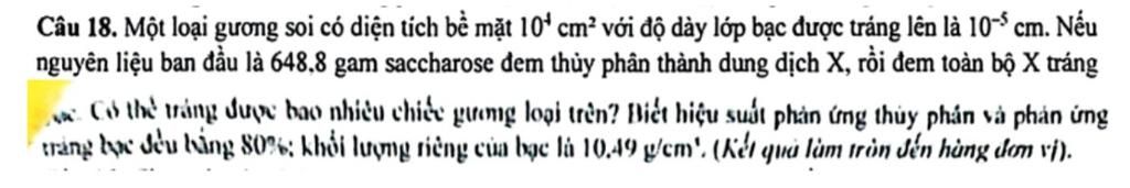 khối lượng `Ag` trên một tấm gương: `10^4 .10^(-5) .10,49 = 1,049` (g)