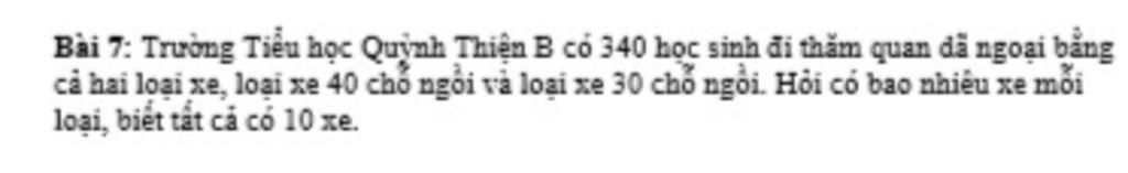 `1` xe `40` chỗ hơn `1` xe `30` chỗ số chỗ ngồi là :