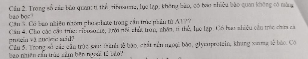 Câu 3: Có 3 nhóm phosphate trong cấu trúc phân tử ATP.