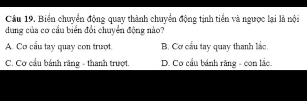 -Biên chuyển động quay thành chuyển động lắc và ngược lại là nội dung của cơ cấu biến đổi chuyển động cơ cấu tay quay Thanh lắc