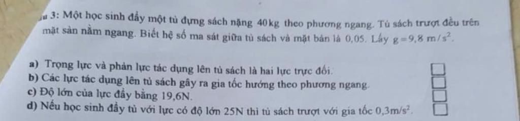 `a)` Trọng lực và phản lực là `2` lực trực đối