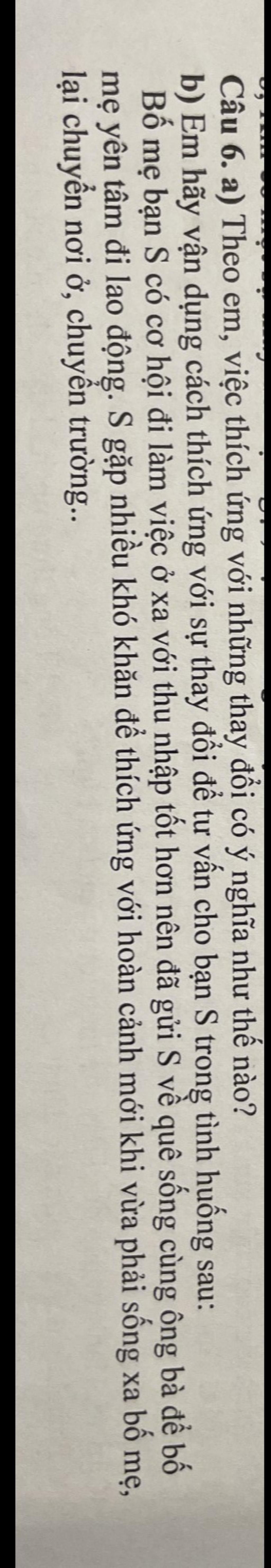 a) Theo em, việc thích ứng với những thay đổi có ý nghĩa rất quan trọng trong cuộc sống. Sự thay đổi là điều không thể tránh khỏi và việc thích nghi giúp chúng ta: