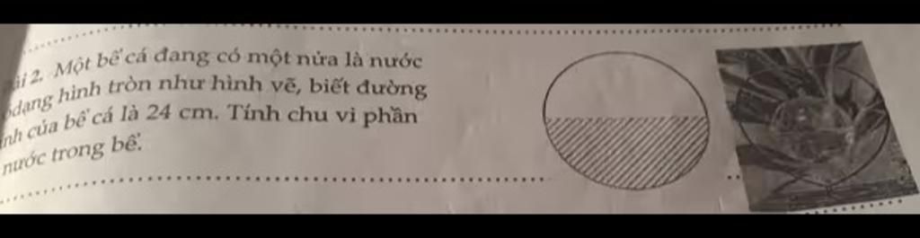 Theo mình vì đề yêu cầu tình chu vi phần nước nên cần cả nửa chu vi hình tròn với cả bề trên mặt nước ( = đường kính ) cộng lại á