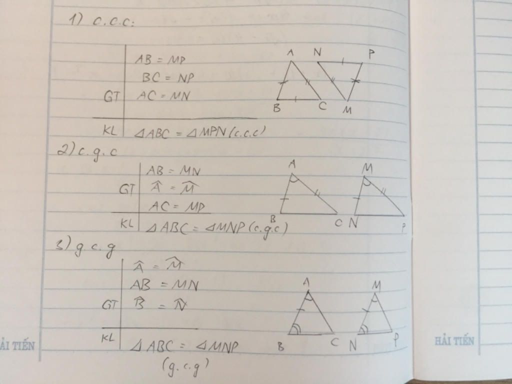 - Trường hợp 1 (c.c.c): nếu ba cạnh của tam giác này bằng ba cạnh của tam giác kia thì hai tam giác bằng nhau.