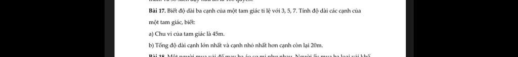 Vậy độ dài ba cạnh của tam giác là `9 ; 15 ; 21 m`