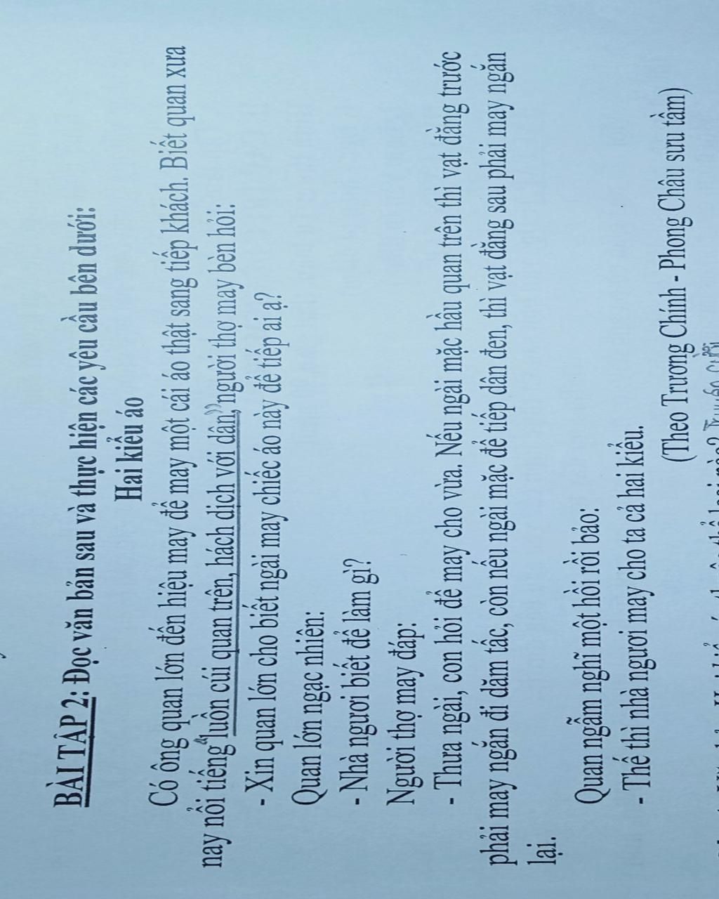 Câu 1: Nêu cảm nghĩ của em về nhân vật ông quan lớn trong văn bản " Hai kiểu áo ".( Trình bày thành đoạn văn 7-10 câu ngắn gọn )
