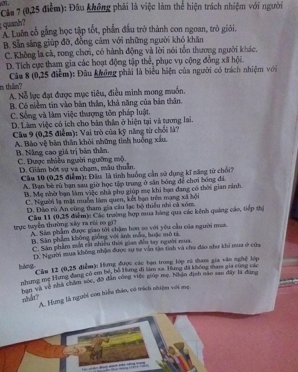 Câu 7 ý A. Bởi vì phấn đấu trở thành con ngoan trò giỏi là trách nhiệm với chính bản thân