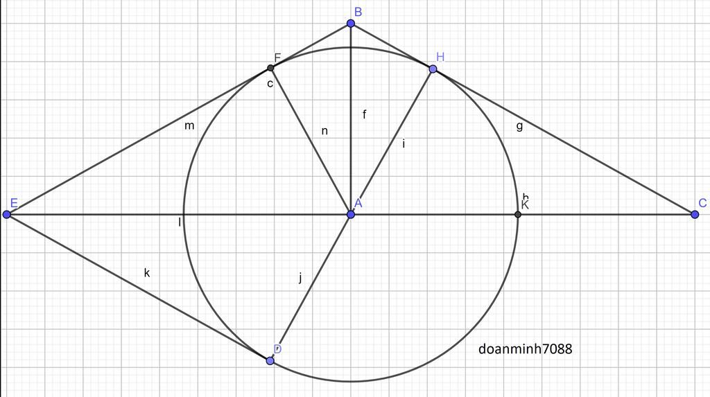 Cho tam giác ABC vuông tại A, đường cao AH. Vẽ đường tròn tâm A bán kính AH cắt đoạn thẳng AC tại K, gọi HD là đường kính của (A;AH). Tiếp tuyến của đường tròn tại D cắt đường thẳng AC ở E.