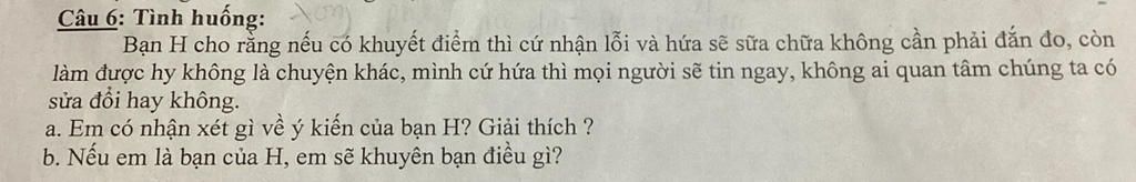 b. Nếu em là bạn của H em sẽ khuyên bạn hãy học cách trung thực ,có lỗi thì phải sửa vừa giúp rèn luyện đạo đức cho bạn và được mọi người tin tưởng.