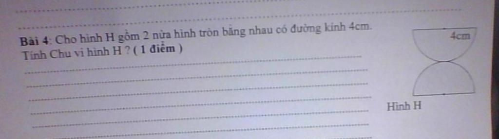 Chu vi hình $H$ bao gồm $2$ đường kính và chu vi đường tròn là: