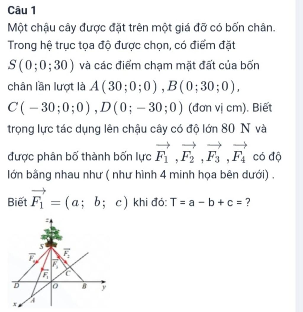 `=>` `vec(F_1)=2/3* vec(SA)=2/3* (30;0;-30)=(20;0;-20)=(a;b;c)`