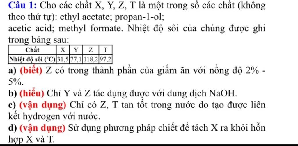 d) sai, cả `2` chất này trộn lẫn vào nhau nhưng do chúng nhiệt độ sôi khác nhau nhiều (alcohol có nhiệt độ sôi cao hơn) nên phải dùng phương pháp chưng cất để tách riêng `2` chất này