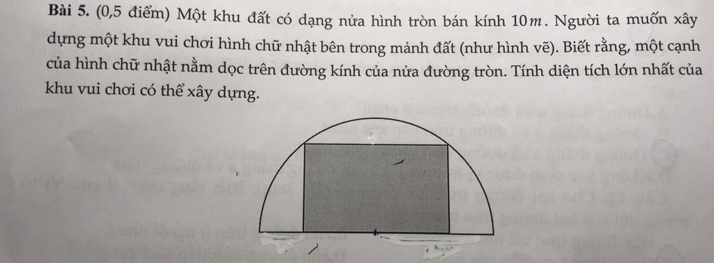 Vậy diện tích lớn nhất của khu vui chơi có thể xây dựng là `100m^2`