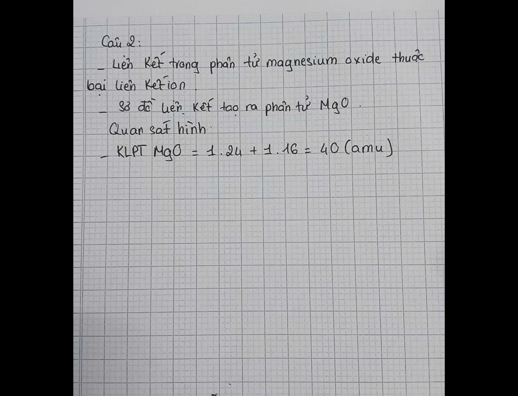Magnesium oxide có nhiều ứng dụng trong đời sống. Nó là thành phần chính trong các lò sản xuất sắt, thép, các loại kim loại màu, thủy tinh hay xi măng, … Biết phân tử chất này gồm 1 nguyên tử magnesium và 1 nguyên tử oxygen. Em hãy cho biết: