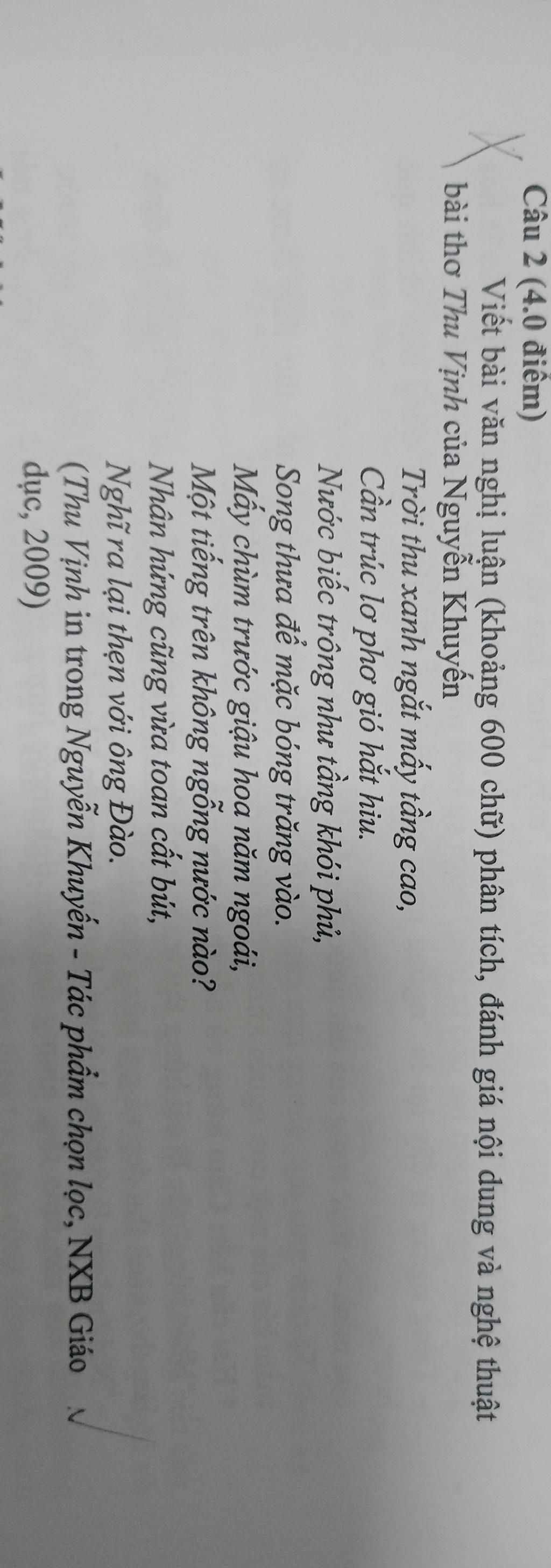 viết bài văn nghị luận (khoảng 600 chữ ) phân tích,đánh giá nội dung và nghệ thuật bài thơ Thu Vịnh của Nguyễn Khuyến