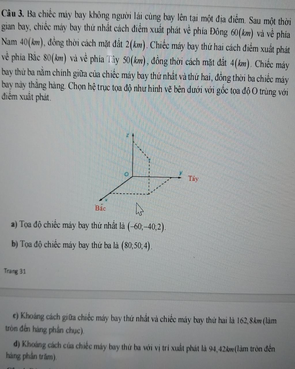Câu 3. Ba chiếc máy bay không người lái cùng bay lên tại một địa điểm. Sau một thời