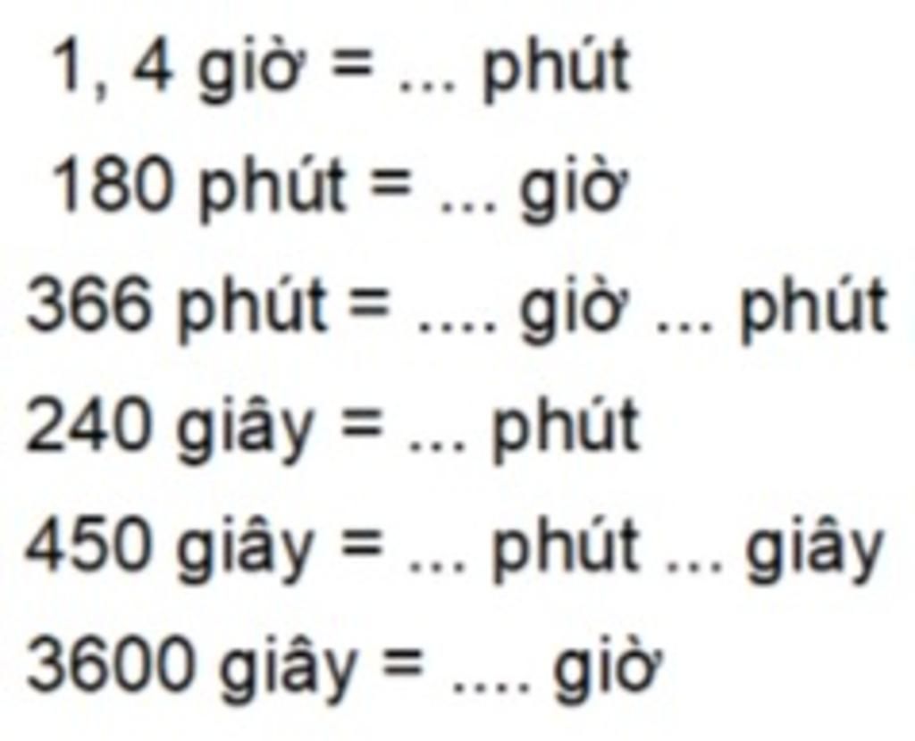 Câu `1`: `1,4` giờ `=` ..... phút