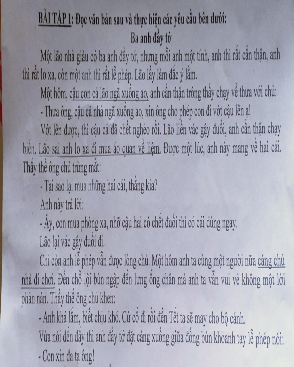 Câu 4: Viết đoạn văn ngắn ( từ 5 - 7 câu ) ghi lại bài học cuộc sống mà em rút ra sau khi đọc văn bản Ba anh đầy tớ