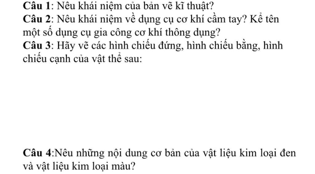 Câu 1: Khái niệm của bản vẽ kỹ thuật