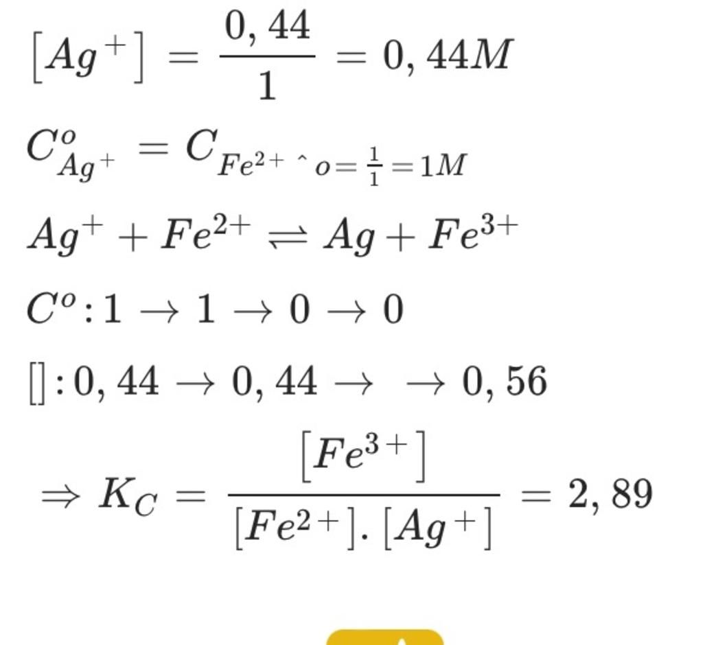 `=[ [ Fe^[3+] ] ]/[ [ Fe^[2+] ] . [ Ag^[+] ] ]`