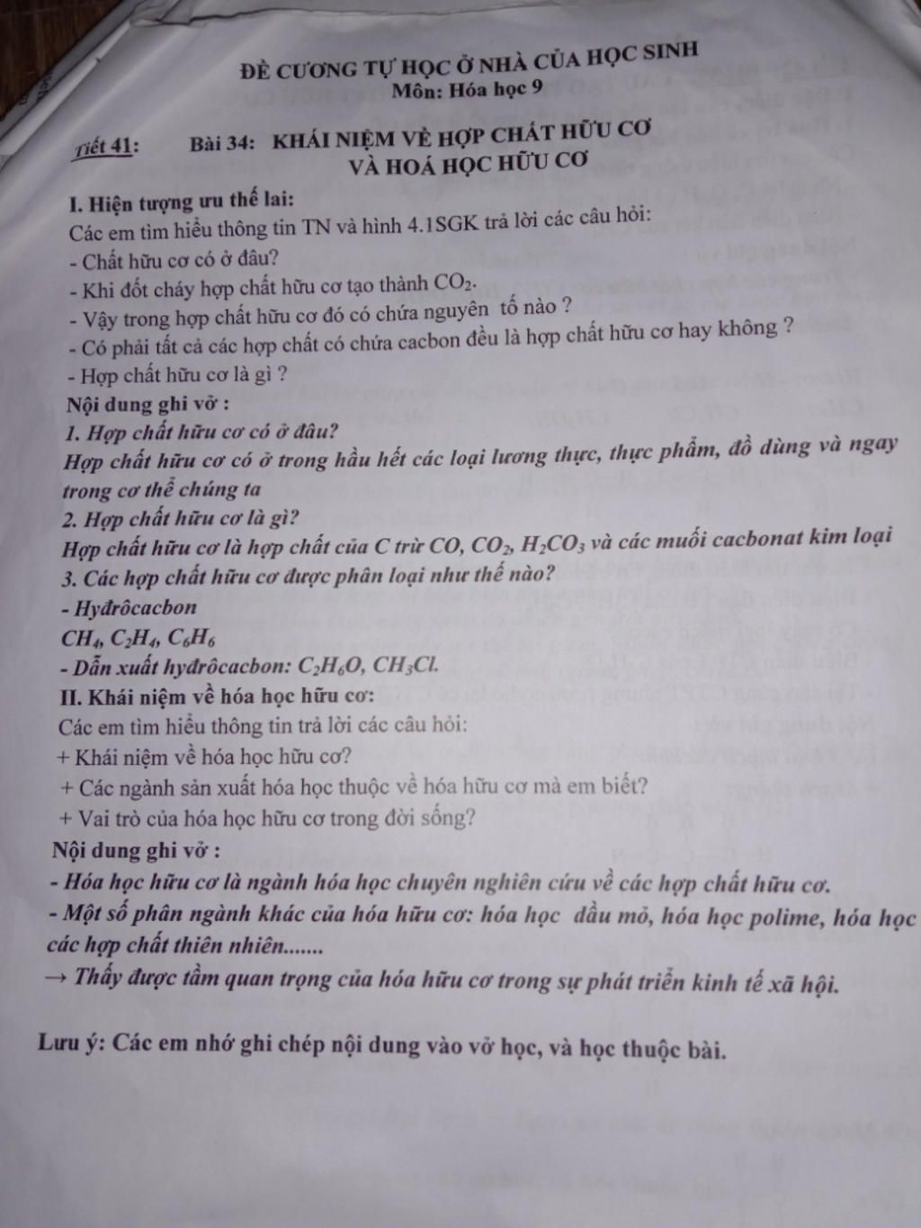 - Chất hữu cơ là hợp chất của cacbon, trừ $CO$, $CO_2$, axit cacbonic, muối cacbonat, muối hidrocacbonat, muối cacbua, muối xianua,...