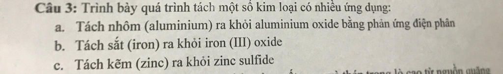 `c)` Nung `ZnS` với `O_2` ở nhiệt độ cao thu được `ZnO` rồi đêm luyện với `C` thu được `Zn`