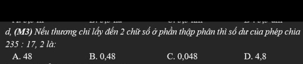 Nếu bạn muốn biết dư bao nhiêu bạn có thể lấy số bị chia trừ đi thương nhân số chia và hiệu chính là số dư